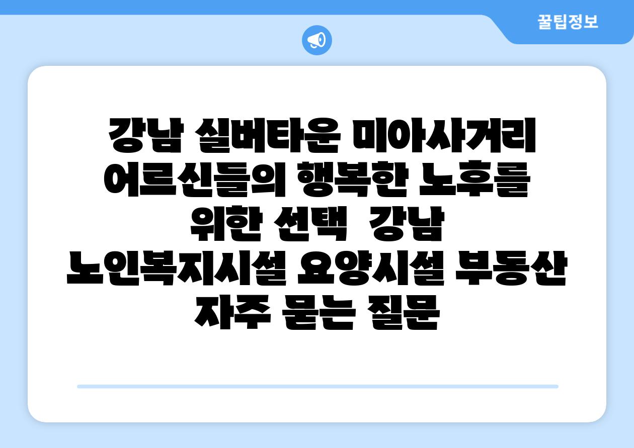 강남 실버타운 미아사거리| 어르신들의 행복한 노후를 위한 선택 | 강남, 노인복지시설, 요양시설, 부동산 에 대해 자주 묻는 질문 TOP 5