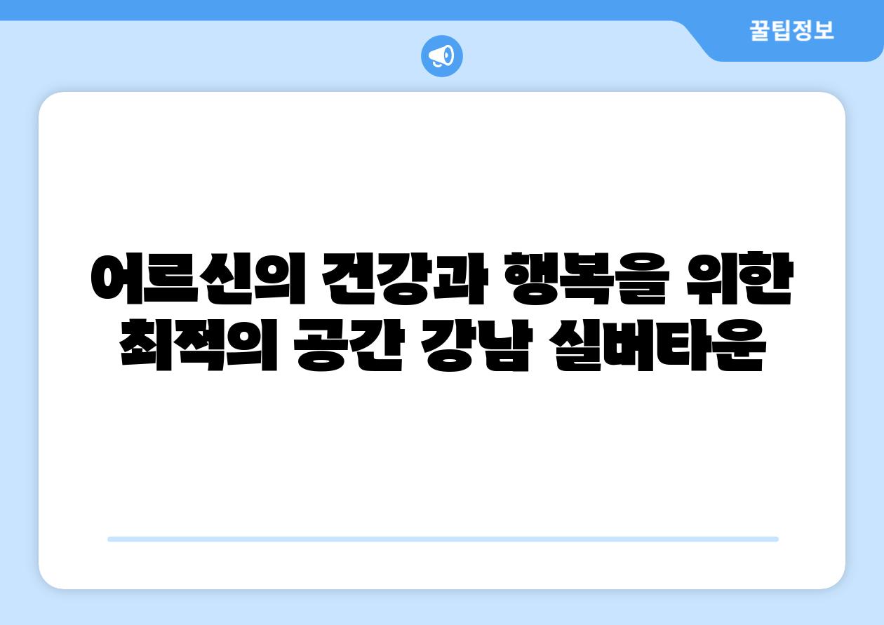 - 강남 실버타운은 최고의 의료 서비스와 편리한 생활 환경을 제공하며, 어르신들이 건강하고 행복한 노후를 보내실 수 있도록 최적화된 시설입니다.